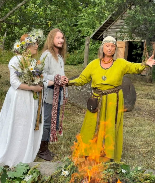 Ja jednak wzięłam taki ślub rok wcześniej, ponieważ mój mąż jest rodzimowiercą. Nasz ślub nie miał skutków prawnych, dlatego wcześniej zawarliśmy związek cywilny. Tydzień później pojechaliśmy do miejscowości Dvarčiškiai, gdzie znajduje się święte miejsce Romuvy. Dla porządku dodam, że ceremonie ślubne w tym obrządku można zawierać na dowolnym piliakalnisie.